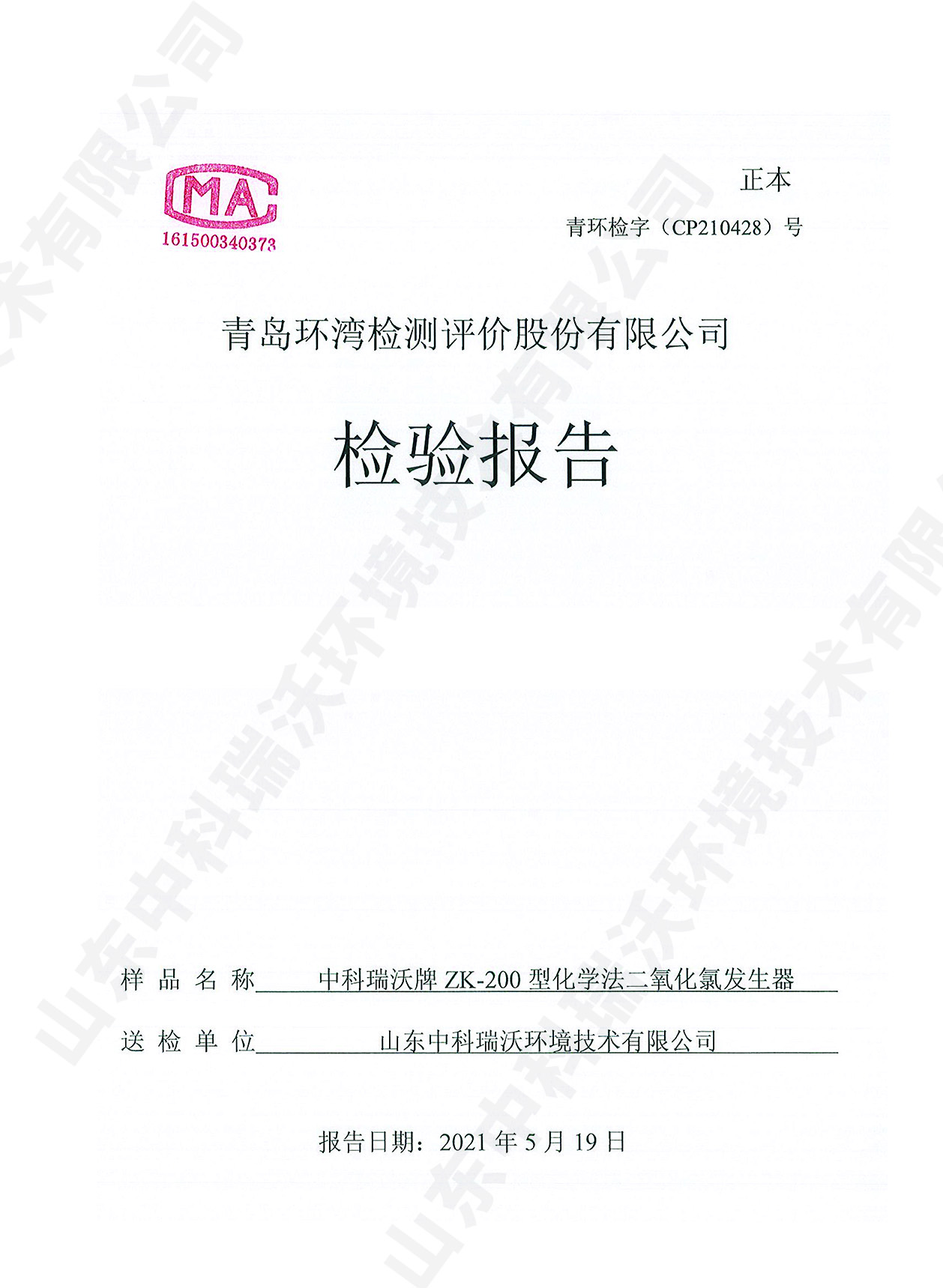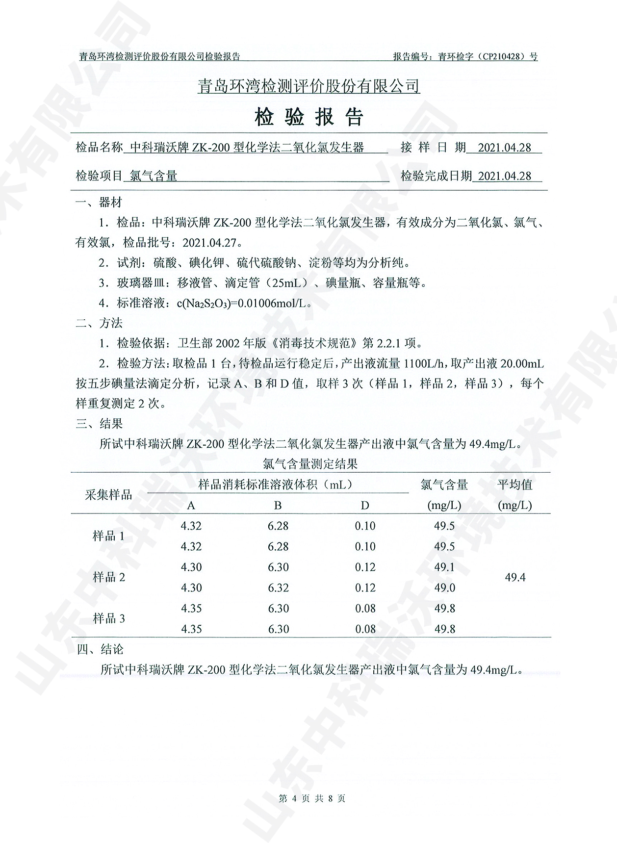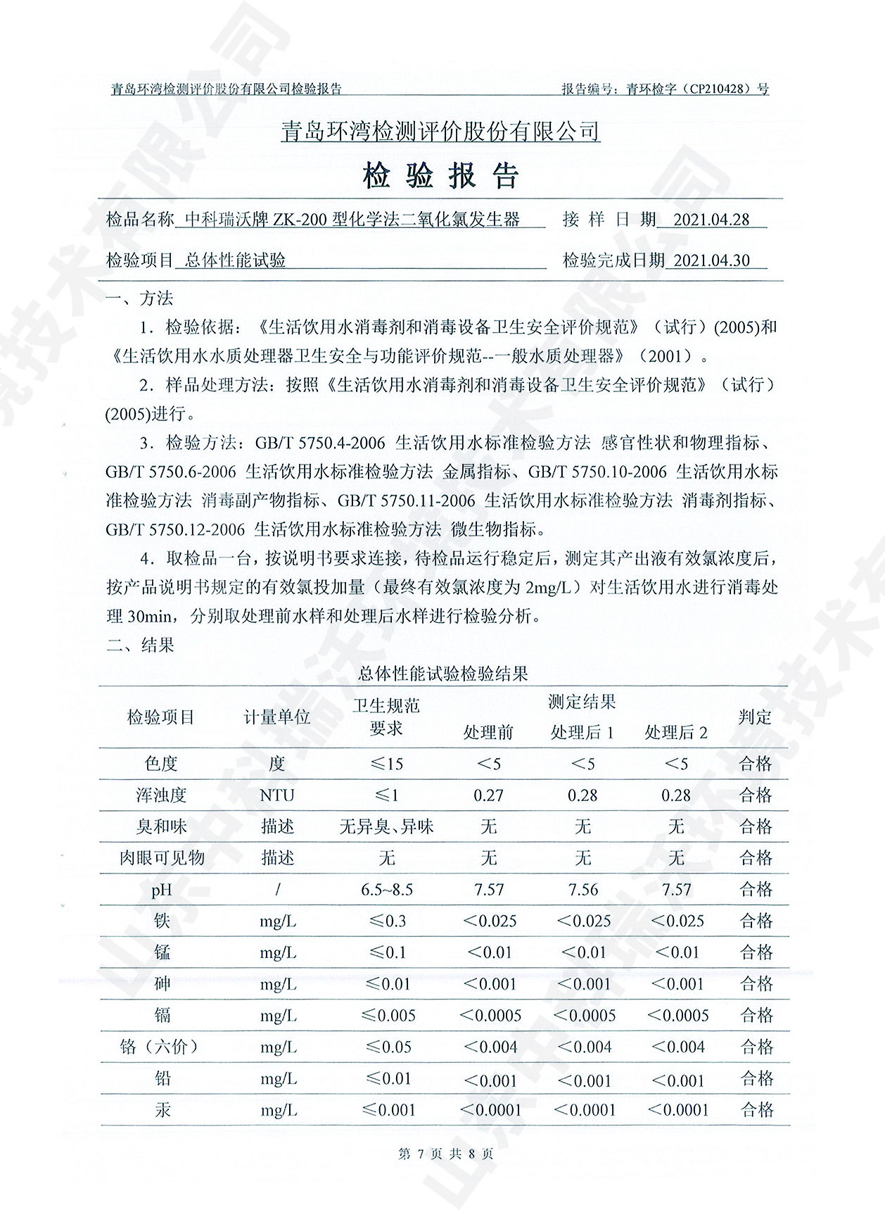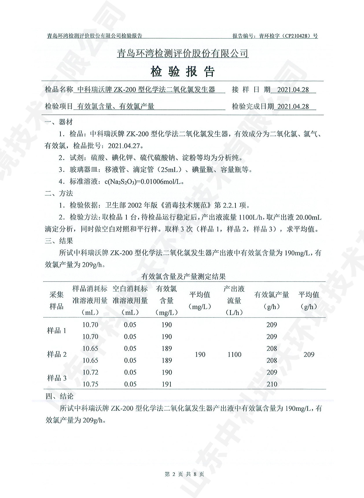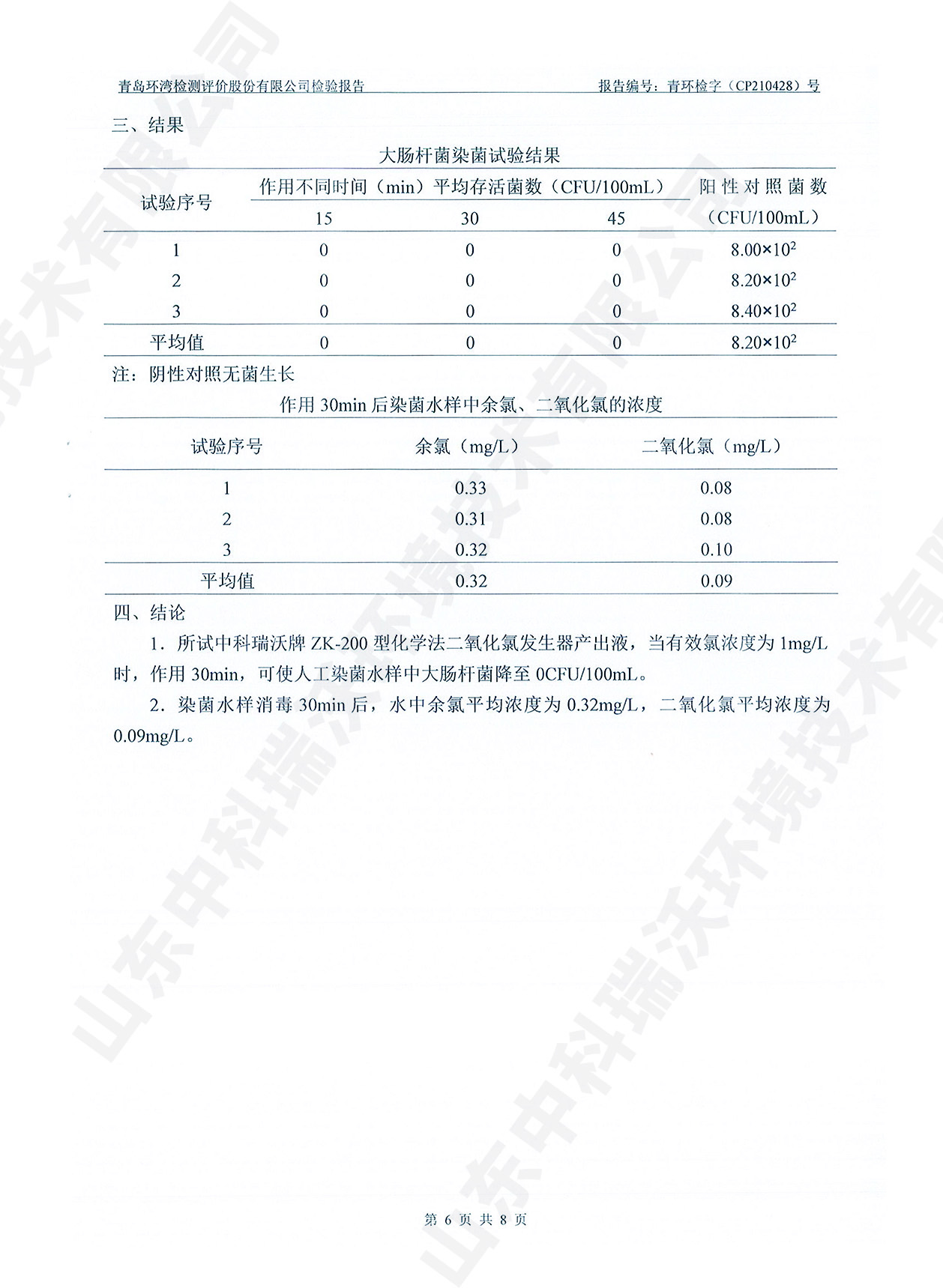 飲水消毒設(shè)備檢測報(bào)告~二氧化氯消毒
